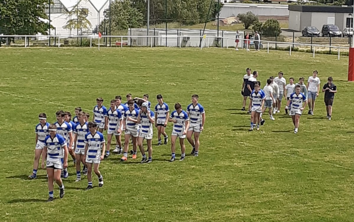 Rapidement menés au score par un essai Soustonnais inscrit à la 3ème minute suite à une contre attaque, nos joueurs ont tout donné pour reprendre l’avantage au score. Après une grosse période de domination sur la première période, ponctuée d’une simple pénalité convertie par Castillon, nos joueurs se retrouvent juste derrière à la pause (5-3 pour les landais). Au retour de la pause, nos joueurs remettent de l’intensité dans le combat au sol notamment pour récupérer de ballons importants. Suite à une bonne séquence de domination, nos joueurs reprendront un court avantage suite à une pénalité de Castillon (6-5 pour les bleus et blancs). S’en suit d’un regain de force et de confiance de la part des visiteurs qui tenteront de passer la ligne d’essai bleu et blanche.. en vain. Malgré tout, ils inscriront une pénalité pour repasser devant (8-6). En fin de match, nos joueurs donneront le maximum une fois de plus pour repasser devant mais manqueront l’occasion de passer la ligne. Nos joueurs, pas assez pragmatique et pas assez récompensés lors des phases de domination, s’inclineront suite à une dernière pénalité offerte aux locaux.. 11-6 pour les Soustonnais, l’aventure s’arrête brutalement pour les jeunes qui n’auront pas démérité…